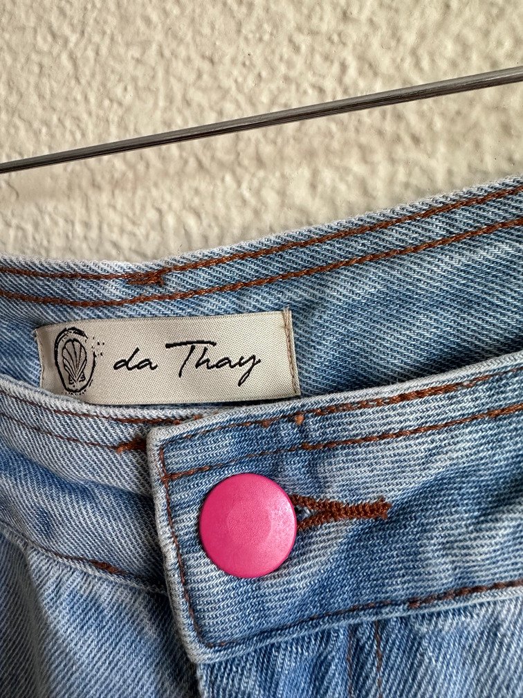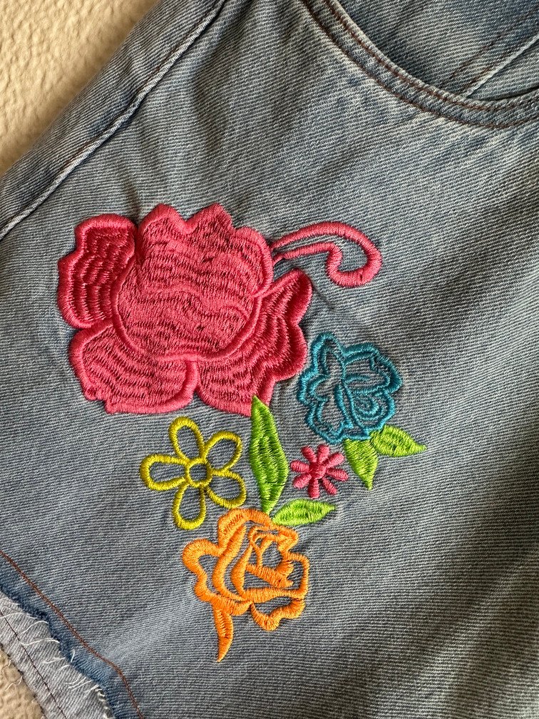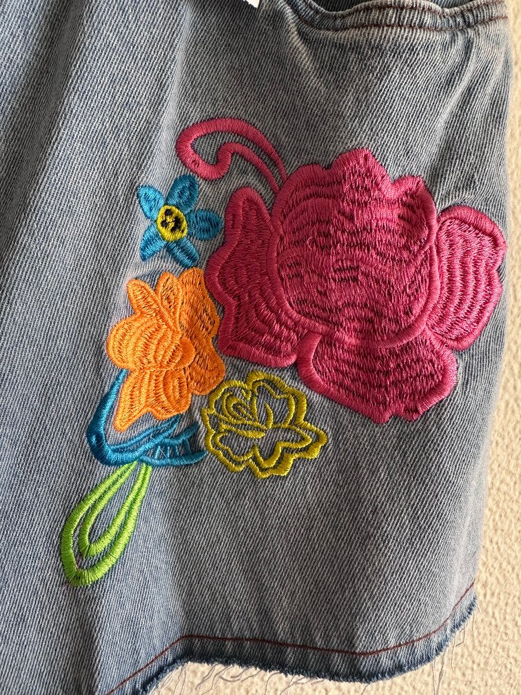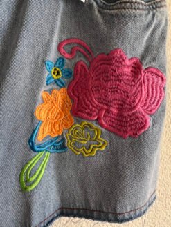 Short Jeans Flores Bordadas com Etiqueta